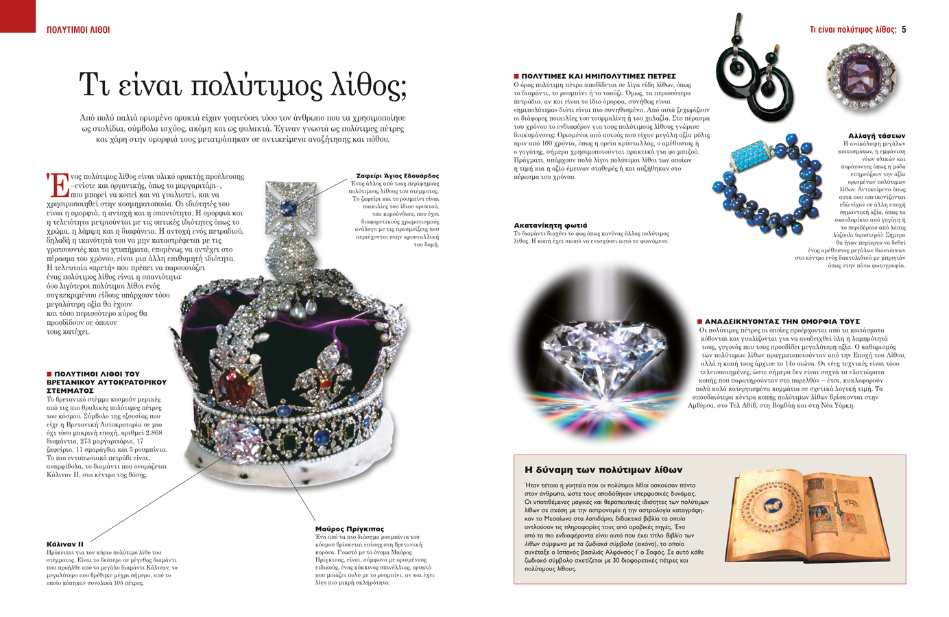 • Περιλαμβάνονται τα πιο εκπληκτικά ορυκτά και πολύτιμοι λίθοι του πλανήτη μας, όπως άμεθυστος, ροζ χαλαζίας, μπλε αχάτης, μάτι του τίγρη, σμαράγδι…